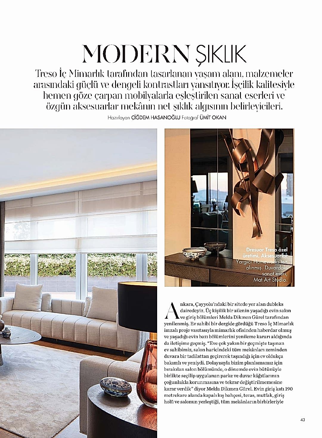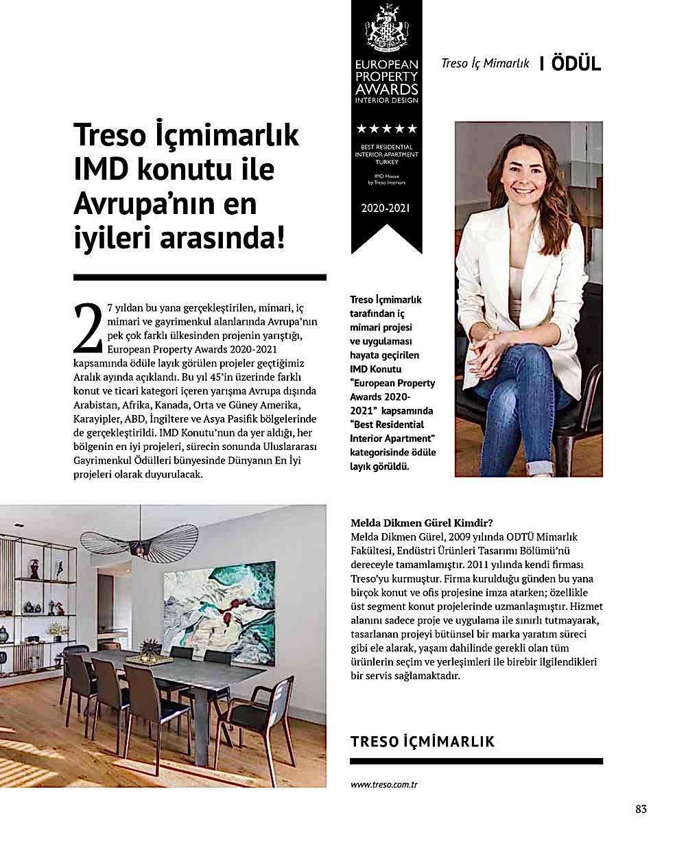 Azerbaycan'da iç mimarlık sektörü, 2011'de kurulan Treso İç Mimarlık stüdyosuyla öne çıkıyor. Melda Dikmen Gürel liderliğinde uluslararası alanda başarılı ve ödüllü projeler sunuyor.